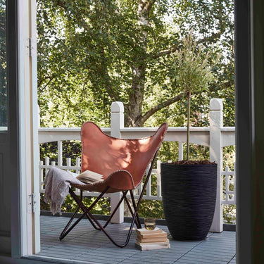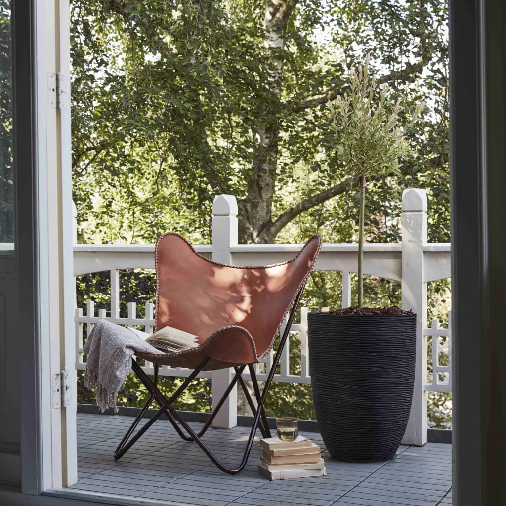 Este vaso possui um design especial com uma textura em nervuras, inspirada nas formas e estruturas da natureza. O vaso é feito de plástico 100% reciclável, resistente aos raios UV e com uma camada de isolamento especial que protege as plantas das geadas no inverno. O vaso é adequado tanto para utilização interior como exterior. Ao colocar o vaso ao ar livre, certifique-se de que perfura um orifício de escoamento na parte inferior.