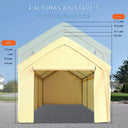 Uma das principais características deste dossel é a opção ajustável de altura lateral. Com 4 opções de altura, você pode escolher a configuração adequada para suas necessidades. Com alturas laterais de 5,8 pés, 6,3 pés, 7 pés e 7,5 pés, e altura no pico de 9,6 pés, 10,1 pés, 10,8 pés e 11,3 pés, você pode proteger carros e barcos de qualquer tamanho ou criar uma área sombreada para reuniões ao ar livre.