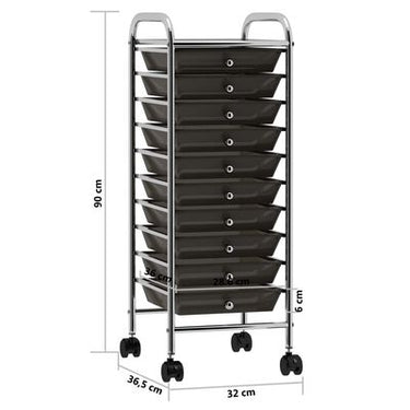 Carrinho de arrumação móvel com 10 gavetas plástico várias cores