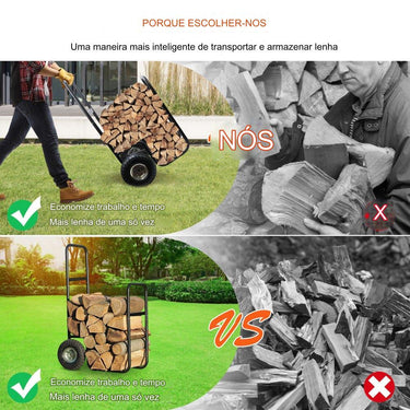 Nosso carrinho de lenha 2-em-1 combina um design prático e funcionalidade excepcional. Com medidas de 51 x 52 x 100 cm, ele oferece amplo espaço para armazenar lenha de forma organizada. Além de facilitar o transporte, também pode ser utilizado como uma prateleira para manter sua madeira arrumada. Transportar e armazenar lenha nunca foi tão fácil!