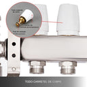 Uma característica inteligente do distribuidor é a presença de uma válvula no coletor de retorno, que é equipada com uma cabeça termoelétrica. Isso permite que o usuário controle remotamente cada área, proporcionando um controle preciso da temperatura em todo o sistema.