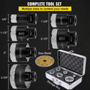 CORTE EFICIENTE E SUAVE - A broca de vidro é feita de diamante de alta qualidade e oferece desempenho mais eficaz do que uma serra copo tradicional de metal duro ou bimetálica. A tecnologia de soldagem a vácuo o torna muito termoestável e durável. Conjunto completo de ferramentas-Nossa broca de porcelana inclui 6 tamanhos: 20/35/40/50/55/68mm. Possui uma lâmina de serra de 5 polegadas. Ter esses tipos disponíveis pode abranger quase todas as suas aplicações. O conjunto de brocas também vem com um estojo de zenamento para seu transporte conveniente. ESTRUTURA HUMANIZADA - Este conjunto de brocas para serra copo possui rosca universal de 5/8"-11 e é adequado para rebarbadoras. O design de flautas em forma de U proporciona maior vida útil, perfuração rápida e suave. FÁCIL DE USAR - O O conjunto de brocas para serra copo diamantada pode ser usado tanto seco quanto molhado, atende às suas diferentes necessidades e recomenda adicionar um pouco de água para prolongar a vida útil