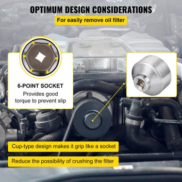 Ferramenta profissional para carro: O conjunto de soquete do filtro de óleo é usado para remover e instalar a tampa do filtro de combustível ao substituir a antiga. Conjunto de soquete de filtro de óleo de 7 peças: Nosso conjunto de chaves de filtro de óleo contém 7 soquetes de baixo perfil em tamanhos: 0,94", 1,06", 1,14", 1,18", 1,26", 1,41", 1,50 polegadas (24, 27, 29, 30 , 32, 36, 38 mm), permitindo trabalhar em uma variedade de carros. Material de alta qualidade: A base do filtro de óleo é feita de aço de alta qualidade para alta resistência e oferece durabilidade sob uso difícil. A superfície com revestimento preto garante resistência à ferrugem e corrosão, garantindo maior vida útil e maior durabilidade. Design inteligente: O design plano permite fácil acesso ao filtro de óleo. O design hexagonal de 6 pontos engata com segurança a tampa do corpo para torque máximo durante a remoção. mostre mais