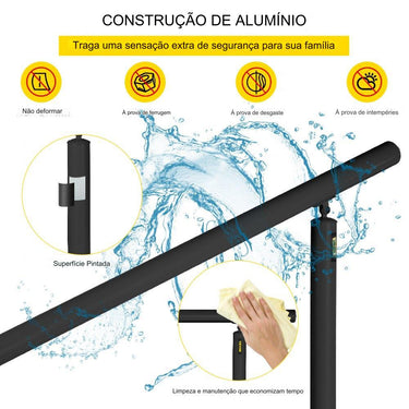 Construído em alumínio resistente, o corrimão possui alta dureza e longa vida útil, resistindo a corrosão mesmo quando exposto ao sol ou à chuva. A técnica de soldagem e pintura bem feita garante excelente desempenho e conforto durante o uso, além de não machucar as mãos. Seu elegante design branco combina perfeitamente com qualquer decoração.