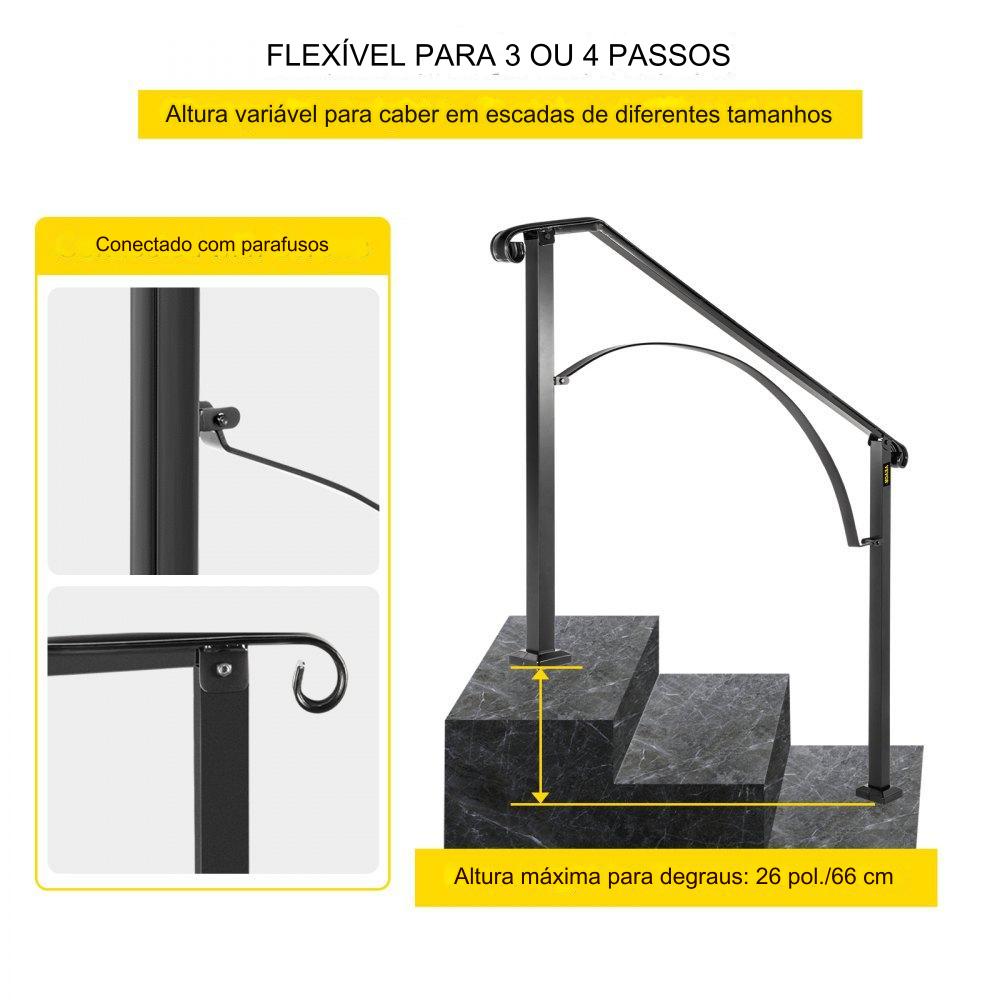 Corrimão Universal de Aço Inoxidável - Com Curva para 3 ou 4 Degraus