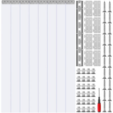 Material de PVC durável: Bem-vindo à nossa cortina de tira de PVC. É macio, elástico e projetado para durar. Não há cheiro irritante e a limpeza é fácil - o seu detergente diário é suficiente. Além disso, uma vez instalado, mede 122 x 244 cm e tem 2 mm de espessura. Visão clara, proteção completa: imagine um mundo onde você pode ver tudo do lado de fora, mas aquelas moscas incômodas e ventos frios não conseguem entrar. Com 50% de sobreposição entre as tiras, nossa cortina de tiras de PVC promete - uma visão cristalina e um ambiente aconchegante e tranquilo só para você. Amigo para todos os climas: esta cortina de tira de plástico pode suportar desde um acampamento frio de -20 ℃ até uma cozinha fumegante de 60 ℃. Imagine o seguinte: dias de verão em que você não perde o ar fresco e dias de inverno em que o frio permanece. Sim, esta é a nossa cortina de tiras. Feito à sua medida: Tem uma porta até aprox. Conosco você está em boas mãos! E escolha o seu tamanho, não julgamos. Um suporte de aço inoxidável e uma trava de pressão facilitam o gerenciamento de molduras de portas de plástico. Montagem, desmontagem - eles serão seus novos melhores amigos. Rápido e fácil, de acordo com seus desejos.