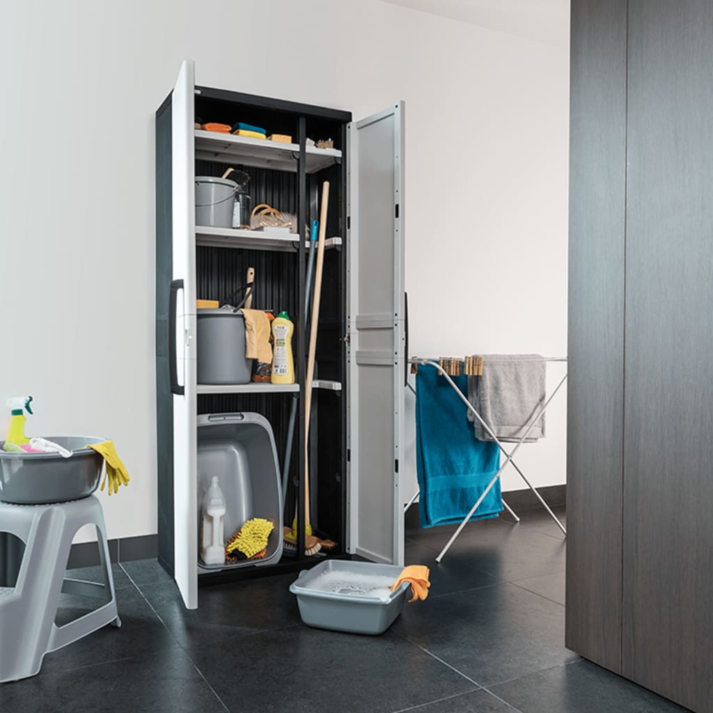 Este banco com 2 degraus da Curver é um banco moderno e indispensável para que possa chegar facilmente às prateleiras mais altas.