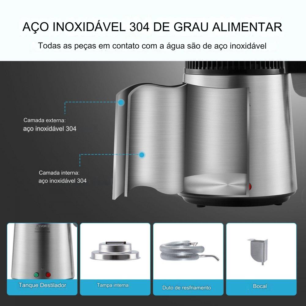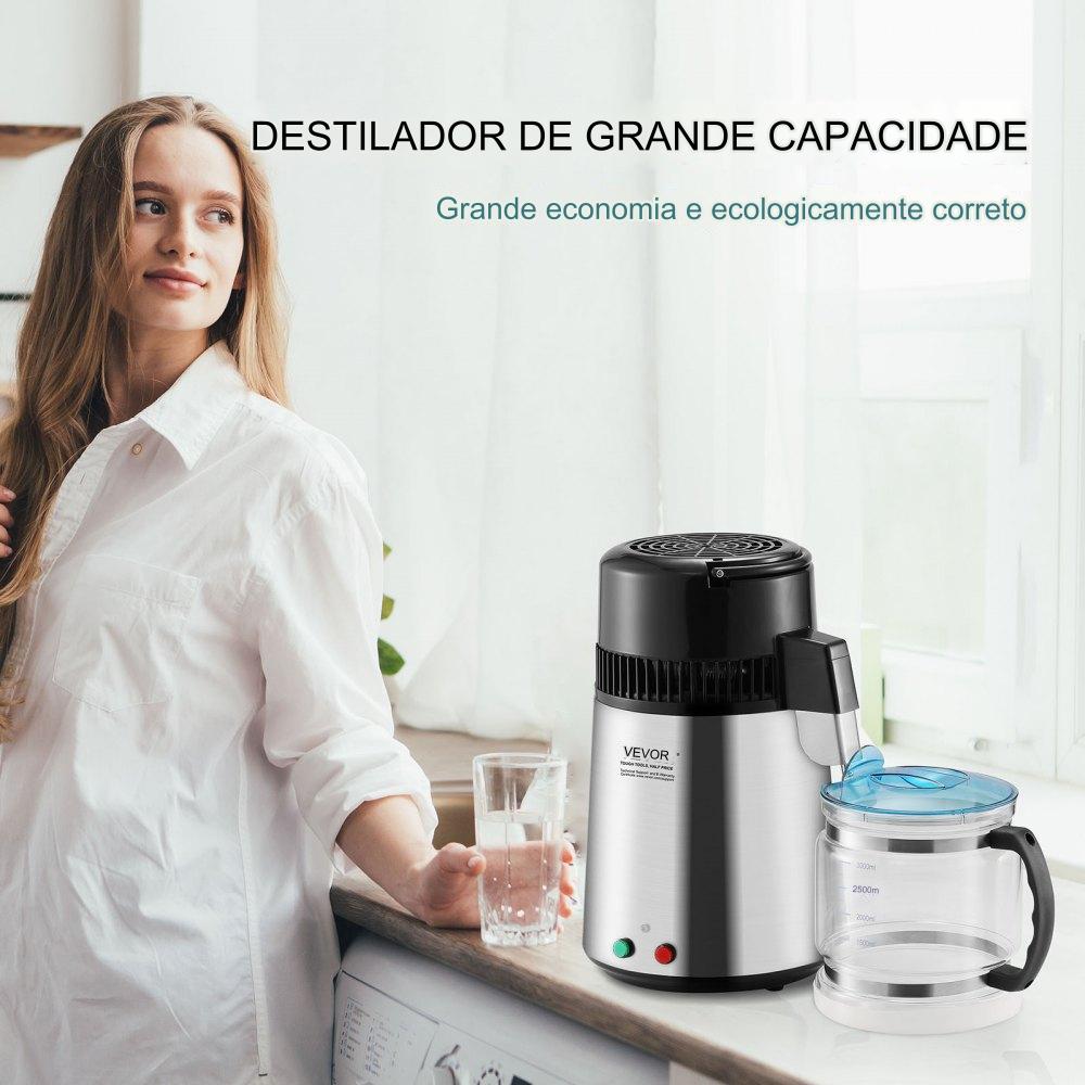 Destilador de Água em Aço Inoxidável (4L Prateado)