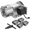 PARÂMETROS DO PRODUTO - Relação de redução: 6:1, Altura central: 65mm, Motor: motor de passo 57 bifásico, Diâmetro do eixo de saída: 30mm, Diâmetro do eixo oco: 10mm, Ângulo de passo: 0,3 graus/passo. EXCELENTE MOTOR - Este eixo rotativo do roteador usa um motor de passo 57 bifásico com torque de força de 1,8N, controle estável, posicionamento preciso e alta taxa de conversão. Mandril preciso-O mandril de 65 mm apresenta alta precisão e excelente durabilidade, adequado para fixar vários tipos de materiais. Após processamento especial, o mandril não enferruja facilmente. BASE FIXA - A base do eixo rotativo CNC é especialmente espessada, o que faz com que a máquina tenha excelente estabilidade durante a operação. VÁRIAS APLICAÇÕES-Este eixo rotativo superior foi projetado para máquinas profissionais de gravação de quatro eixos. O design de eixo A, 4 eixos e 4 mandíbulas está disponível para processos estereoscópicos para processos cilíndricos, curvos, redondos, etc. mostre mais