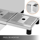 Cor: preto; Material: aço inoxidável; Tratamento de superfície: revestido a pó; Dimensões do item (L x H): 920 x 520 mm; Espessura: 4 mm; Largura de cada braço: 100 mm; Diâmetro do furo: 6mm; Comprimento do parafuso: 50 mm; Número de furos: 29; Peso do produto: 7 kg;