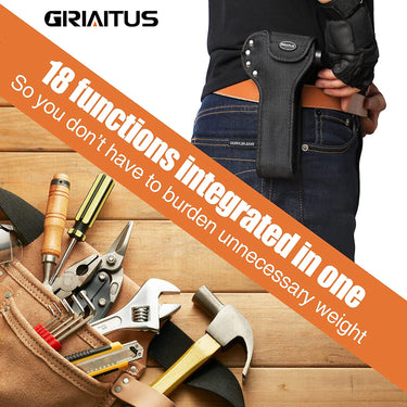 - Companheiro versátil para atividades ao ar livre – Esta ferramenta multifuncional para uso ao ar livre consiste em 18 ferramentas diferentes, incluindo martelo, machado, alicate, lâmina de faca, serra, várias chaves Allen, chave de fenda Phillips, abridor de garrafas, lima, descalcificador de peixe e muito mais com um organizador portátil. Esta multiferramenta é versátil e o kit salva-vidas mais inteligente e compacto de seu tipo.