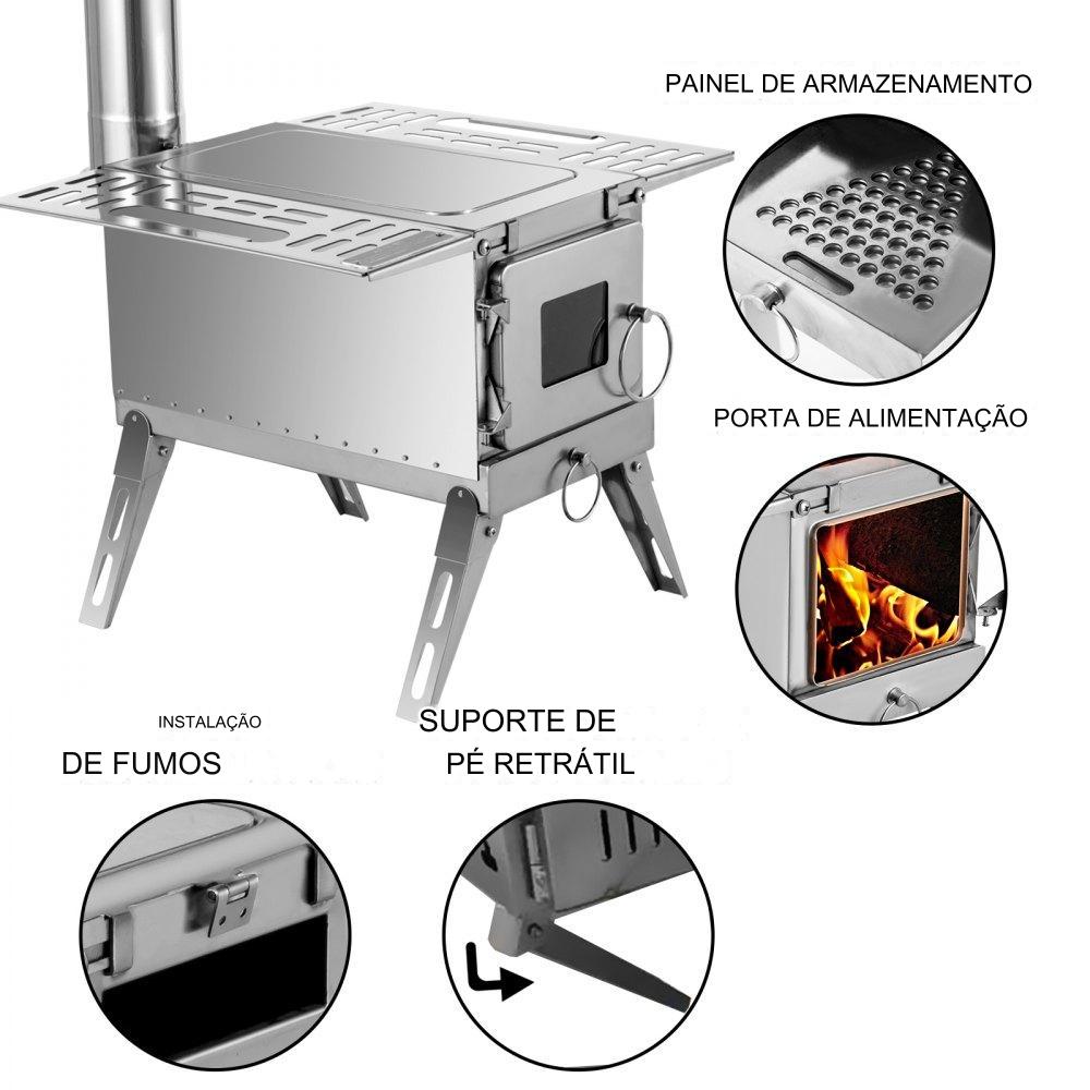 Fogão de Tenda em Aço Inoxidável - Portátil 46.5x38x36cm