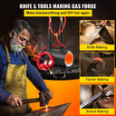 - Acompanha um conjunto completo de acessórios para forjamento, incluindo luvas de alta temperatura, alicate, três mangueiras de gás, regulador de pressão de gás, duas pedras de amolar, estrutura de suporte, dois queimadores, seis pescoços de pneus, fita de PTFE, duas fatias de ar e uma cruz.