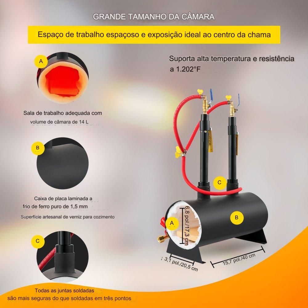 - O tapete isolante espesso feito de fibras de silicato de alumínio de alta qualidade e a tampa da forja garantem a manutenção da temperatura constante.