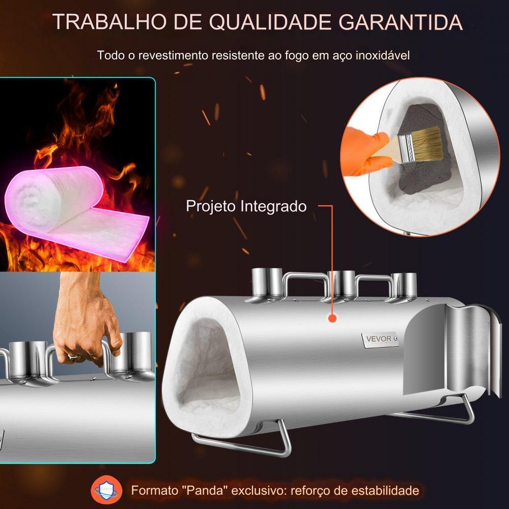 A construção integrada deste forno é feita de aço inoxidável polido de alta qualidade, tornando-o durável e resistente. E o melhor de tudo, esse forno não possui soldas. Com suas dimensões de 23,6 x 8,7 x 8,11 polegadas / 600 x 220 x 206 mm e peso de 34,4 libras / 15,6 kg, você pode transportá-lo com facilidade e usá-lo em qualquer lugar que desejar.