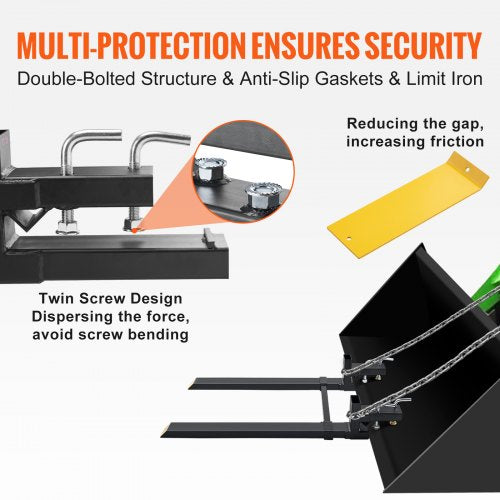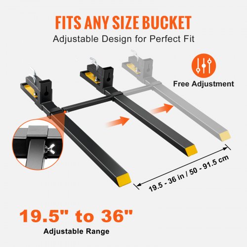 Capacidade de 4000 libras: Feitos de tubos de aço quadrados duráveis, esses garfos para paletes podem atender facilmente às suas necessidades diárias sem dobrar ou quebrar sob pressão. Parafusos e parafusos reforçados: Com parafusos reforçados e cabeças de parafuso ranhuradas, nosso garfo para paletes foi projetado para durar. Barra estabilizadora ajustável: A barra estabilizadora pode ser ajustada entre 495 e 915 mm. Você não precisa mais se preocupar com a quebra dos garfos devido a cargas pesadas. Fique seguro ao concluir suas tarefas agrícolas e de jardinagem. Fácil instalação e versatilidade: Nosso garfo para trator foi projetado para lidar com uma variedade de tarefas. Basta deslizar o garfo sobre a ponta da colher e prendê-lo no lugar. Você pode usá-lo para mover toras, madeira e lenha, transportar postes de cerca e fardos de feno, limpar detritos e arbustos e muito mais. mostre mais