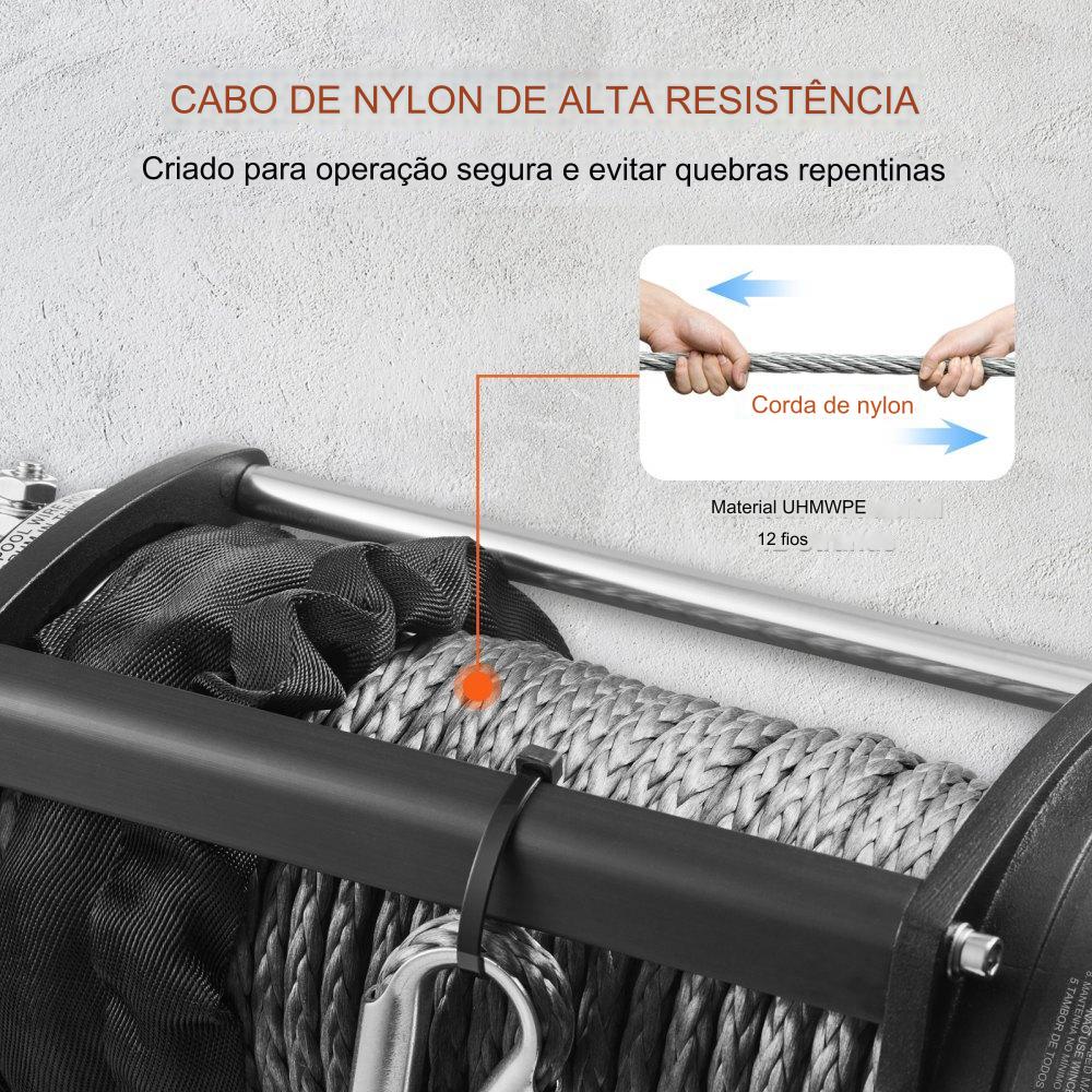 Cabo premium: O guincho VEVOR é equipado com uma corda de nylon de alta resistência de 12 fios, que possui uma força nominal para lidar com todos os tipos de trabalho de tração tanto no solo quanto debaixo d'água. Além disso, os últimos cinco rolos do cabo são marcados em vermelho para garantir a segurança durante o uso.