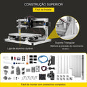 Possui uma área de trabalho efetiva de 300 x 180 x 45 mm, permitindo uma gravura de nível em objetos de tamanho médio. A estrutura é feita de alumínio 2020 e peças de matriz de alumínio, proporcionando durabilidade e estabilidade.
