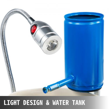 PARÂMETROS DO PRODUTO - Potência nominal: 120W, Tensão nominal: 220V; Velocidade nominal: 1800 rpm; Diâmetro da roda de polimento: 150mm; Material: aço inoxidável de alta qualidade. VELOCIDADE VARIÁVEL E BAIXO RUÍDO - O polidor é compacto e leve, possui alta eficiência de energia, velocidade de até 1800 rpm e operação extremamente silenciosa. O diâmetro máximo do rebolo é de 150 mm. DESIGN DE MANIPULADOR E ELEVAÇÃO - O manipulador pode ser polido com vários ângulos e múltiplas escalas. O design do display digital é intuitivo e brilhante.O manipulador pode ser ajustado para cima e para baixo; A operação é flexível e descomplicada. Design de luz e tanque-máquina de polimento de pedra com lâmpada única, interruptor independente brilhante, pode se mover em vários ângulos e o tanque de água pode facilitar o polimento. AMPLA APLICAÇÃO - A máquina de lapidação tem a função de cortar, gravar, perfurar, retificar, polir, limpar. Um dispositivo atende a vários requisitos. Adequado para dentaduras, joias, jade, pedra, escultura em madeira, ouro, artesanato, etc.