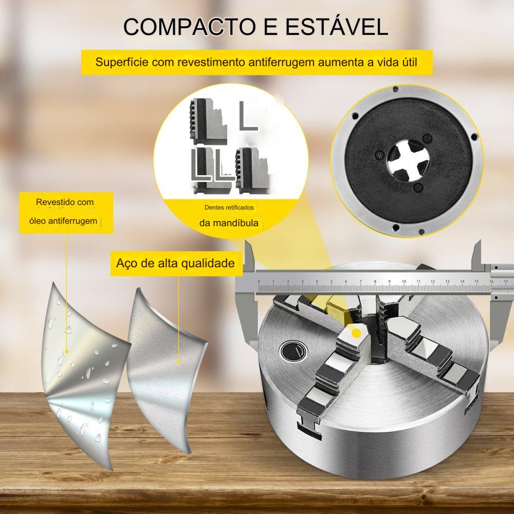 É um mandril altamente adaptável, adequado para todos os tipos de tornos polivalentes, tornos CNC econômicos, retificadoras, fresadoras, furadeiras e acessórios de máquinas-ferramenta. Possui tamanho de 6,3 polegadas / 160 mm e várias medidas específicas de faixa de aperto e diâmetros.