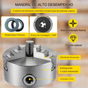 Este mandril de torno de metal é amplamente utilizado para a rotação geral de eixos em tornos de metal, incluindo materiais mais sensíveis.