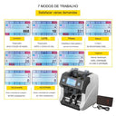 Com uma espessura mínima de nota contada de 0,0031 polegadas (0,08 mm) e uma espessura máxima de 0,0047 polegadas (0,12 mm), esse contador é capaz de lidar com uma ampla variedade de notas de diferentes países e valores.