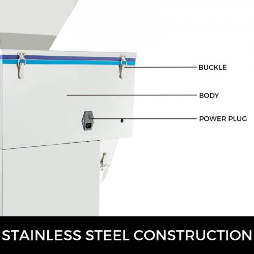 CONTROLE DE MICROCOMPUTADOR - Esta máquina de envase de pó é operada por sistema automático de controle de microcomputador para pesagem científica e processo de envase. Enchimento rápido e preciso-Através de vibração eficiente, o na máquina aumenta a velocidade de enchimento e garante que o material de enchimento flua suavemente e não grude um no outro. Melhore a precisão do enchimento. CASCA DE AÇO INOXIDÁVEL - Toda a máquina é feita de aço inoxidável, um material de qualidade alimentar que é resistente à corrosão, ferrugem, ácidos e álcalis. Destrave as fivelas para realizar a limpeza interna. PROJETO CONTROLADO - Os volumes de entrada e saída podem ser ajustados de acordo com as necessidades reais. O interior é visível através de uma janela transparente. Rodas universais bloqueáveis para transporte conveniente.