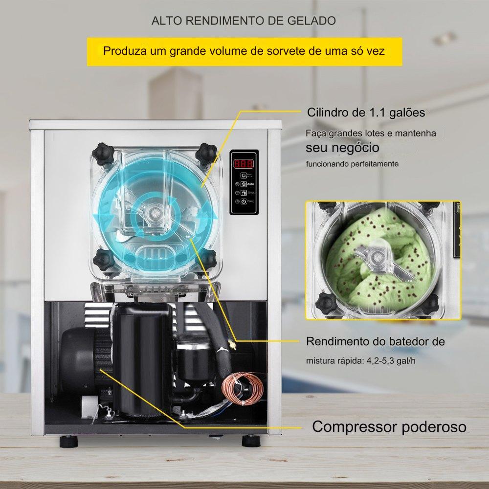 Máquina de Gelado Duro Comercial - Aço Inoxidável
