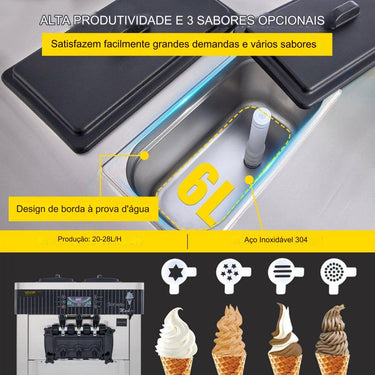 Máquina de Gelado Soft (3 Sabores 6L LCD)