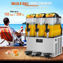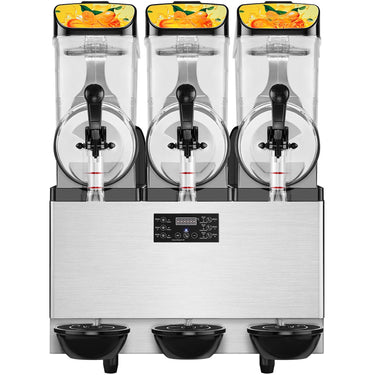 - 3 x 12 L Slush Maker: Máquina de gelo Slush com três latas de bebida, cada uma contendo 12 L (3,2 gal.). Nossa máquina comercial de gelo granulado pode fazer smoothie de 3 x 25 xícaras (500ml por xícara) em uma hora, atendendo a um grande número de pessoas ao mesmo tempo. Além disso, smoothies ou bebidas alcoólicas podem ser feitas separadamente, para que você possa desfrutar de uma bebida refrescante a qualquer momento.