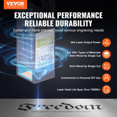 Excelente desempenho, qualidade confiável: Experimente um desempenho excepcional com nosso gravador a laser. Com potência de laser de 20 W, grava e corta sem esforço mais de 100 tipos de materiais. Desfrute de recursos de última geração, como capacidade máxima de corte de madeira de 5 mm, vida útil da cabeça do laser de mais de 10.000 horas (com 80% de potência) e uma espaçosa área de gravação de 400 x 400 mm. Ideal para projetos DIY comerciais e privados. Combinação de precisão e habilidade: Nossa máquina de gravação a laser apresenta tecnologia laser inovadora e compressão pontual que oferece resultados mais rápidos e precisos para todas as suas necessidades de gravação. O tamanho do feixe de laser de 0,08 x 0,08 mm garante energia concentrada e gravação e corte mais finos e fáceis. O motor de passo e a transmissão por correia dentada permitem gravações em alta velocidade de até 10.000 mm/min. Aproveite a melhor experiência de gravação. mostre mais