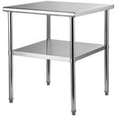 Mesa comercial de aço inoxidável 30' x 30' x 36' Mesa de trabalho de duas camadas de aço inoxidável Mesa de desmontagem Gastro 226kg + 136kg Capacidad