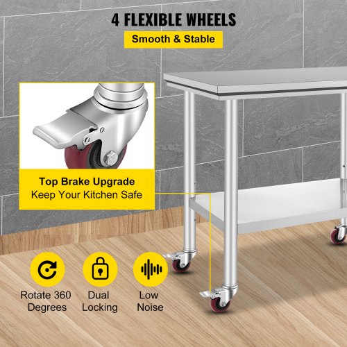 Mesa de trabalho 91 x 60 x 82 cm mesa de trabalho de catering em aço inoxidável capacidade de carga 160 kg