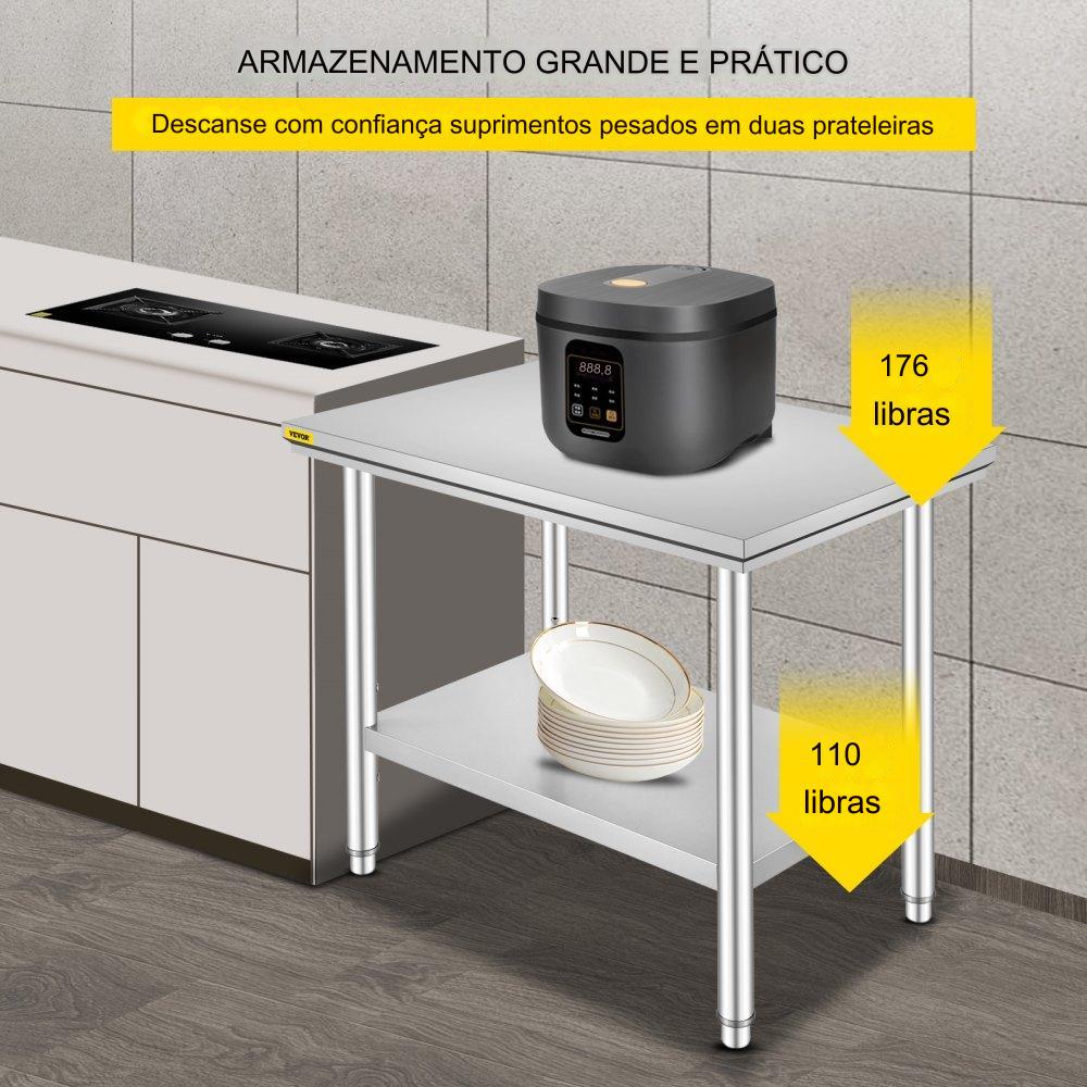 - 【GRANDE CAPACIDADE】 - A mesa de aço inoxidável tem uma capacidade de carga máxima de 260 kg. O tampo mede 900 x 600 mm e a prateleira inferior mede 820 x 520 mm, oferecendo amplo espaço de armazenamento.