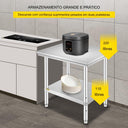 Além de armazenar objetos, a mesa também pode ser usada para diversas atividades na cozinha, como cortar vegetais, amassar massa e cortar carne. É uma escolha ideal para bares, restaurantes, hotéis, buffets, eventos de catering e salas de descanso em escritórios.