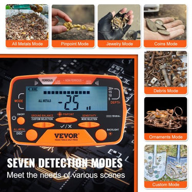 Detecção de alta precisão: O detector de metais adulto é ajustado com precisão para capturar pequenos sinais de metal para que você não perca nenhum tesouro valioso. O bipe claro e o display LCD retroiluminado permitem que você compreenda facilmente a situação de detecção durante a pesquisa. Fácil de transportar: O detector de metais profissional está equipado com uma bobina de busca de 10", que é leve e portátil. Quer se trate de uma aventura ao ar livre ou de uma pesquisa em ambientes fechados, você pode se divertir pesquisando em qualquer lugar e a qualquer hora. E a alça, ajustável de 1056 a 1326 mm, pode se adaptar a diferentes alturas do usuário para proporcionar uma experiência operacional confortável. Aplicações multifuncionais: Os detectores de ouro para adultos e profissionais possuem sete modos: Modo Todos os Metais, Modo Pinpoint, Modo Jóias, Modo Moeda, Modo Detritos, Modo Ornamento e Modo Personalizado. Esteja você procurando fundações metálicas, realizando inspeções de segurança, localizando itens perdidos ou participando de uma caça ao ar livre por ouro e tesouros, nossos produtos facilitam o alcance de seus objetivos.