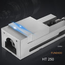 O torno possui uma estrutura premium, com mandíbulas de aço de alta resistência ao desgaste e vida útil prolongada após a têmpera de alta frequência. O corpo do torno é feito de ferro fundido de alta qualidade HT250, que proporciona boa tenacidade, alta resistência e durabilidade. As superfícies de guia do torno são polidas finamente, garantindo uma superfície lisa para um movimento estável e posicionamento preciso ao apertar a peça de trabalho. A força de aperto do torno pode atingir até 19 KN, tornando-o adequado para peças de diferentes tamanhos.