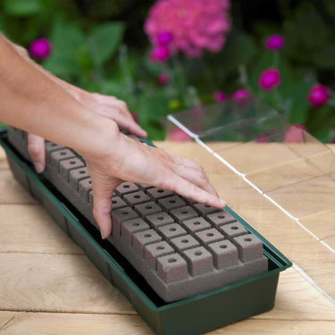 A bandeja de reprodução é feita de plástico flexível com um fundo plano, incluindo uma tampa transparente e uma bandeja com substrato de espuma composta por 4 linhas de 16 células. Por conseguinte, é ideal para colocar no peitoril da janela, bem como adequada para mudas de diferentes espécies de plantas. O meio de crescimento não só preserva as raízes contra a luz, como também garante um fornecimento regular de oxigénio e uma irrigação ideal, enquanto mantém o valor do pH equilibrado e elimina os riscos de doenças. Como consequência, garante acelerar a germinação.