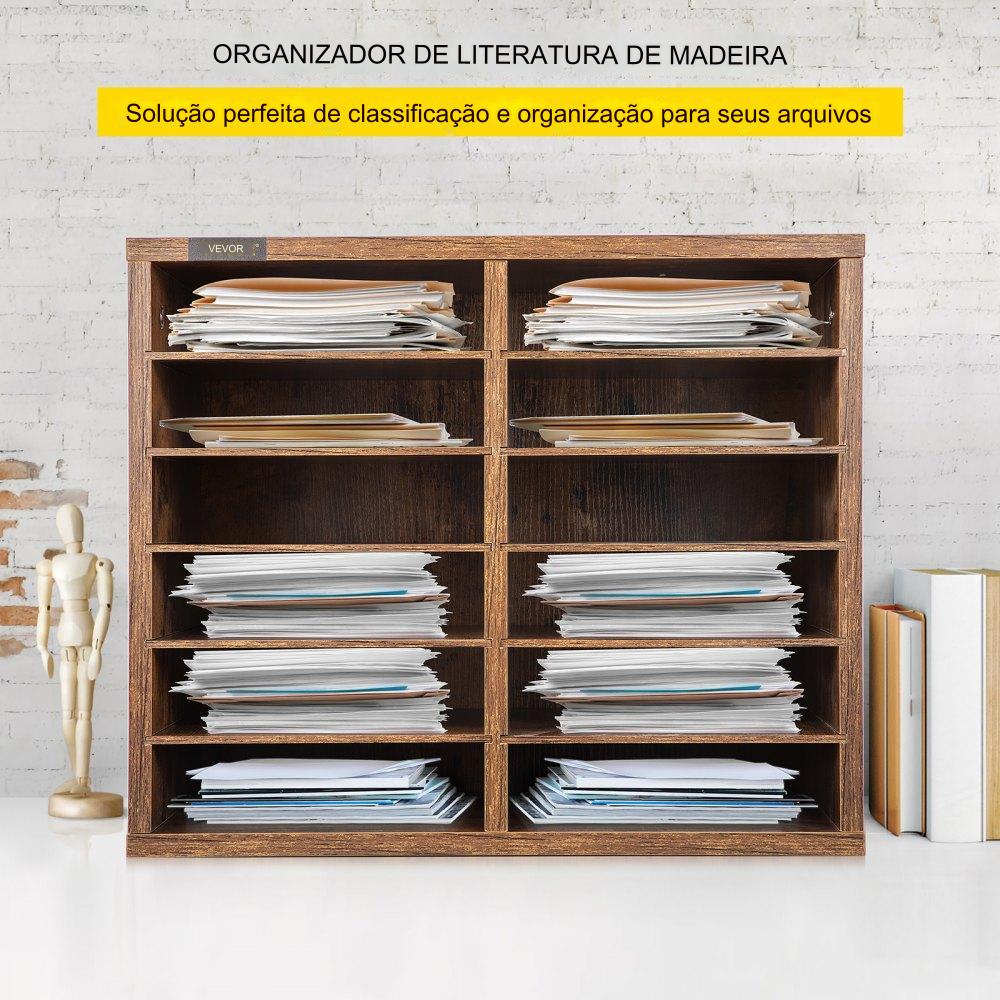 O compartimento de armazenamento VEVOR é perfeito para quem precisa de mais espaço em sua mesa. Com seus 12 compartimentos, oferece amplo espaço para armazenar e organizar livros, documentos, revistas, papéis e muito mais. Cada compartimento possui um tamanho de 22 x 29,5 x 6 cm (8,7 x 11,8 x 2,4 polegadas) e pode armazenar mais de 500 folhas de tamanho A4.