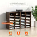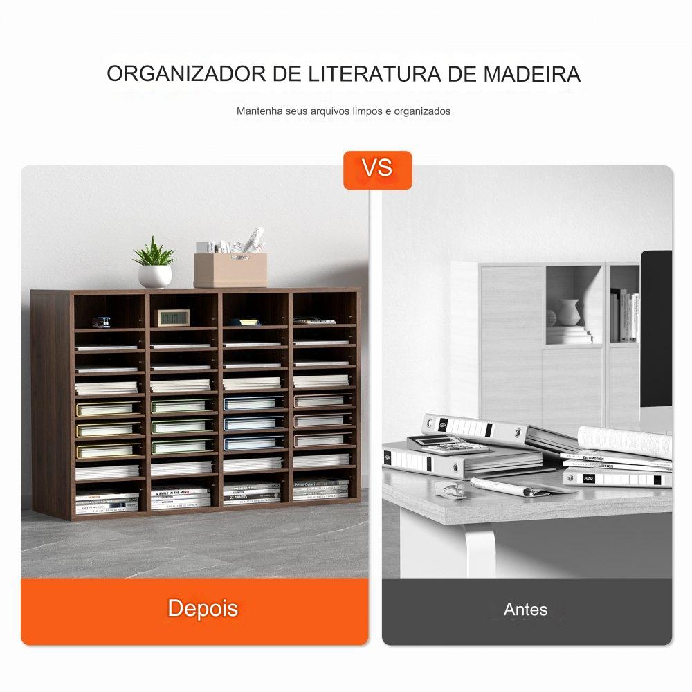 Diga adeus às mesas lotadas com o Classificador de Madeira VOR 39,3 x 12 x 26,8 polegadas / 997 x 305 x 680 mm. Este organizador de alta capacidade possui um total de 36 compartimentos distribuídos em 9 linhas e 4 colunas, oferecendo espaço amplo para armazenar e organizar livros, documentos, revistas, papéis e outros materiais. Mantenha seu local de trabalho impecável de forma rápida e fácil.
