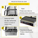 Com um botão giratório para controle preciso da temperatura, esta máquina de sanduíche comercial permite ajustar a temperatura entre 50-300 °C. Uma luz de LED indica o estado de aquecimento, facilitando o monitoramento durante o uso.