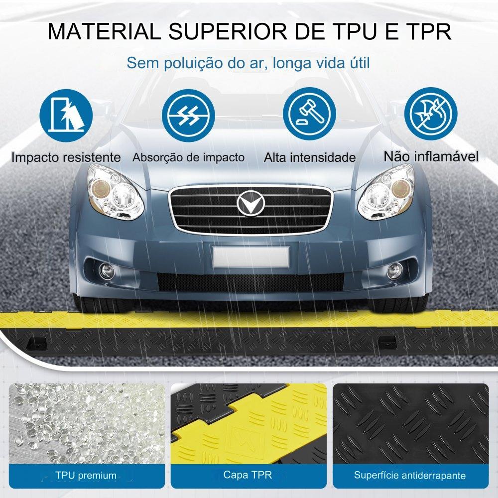Livre de Preocupações para Qualquer Ocasião: Com essas rampas de proteção de cabos, você pode aproveitar a festa sem se preocupar. Projetadas para fixar cabos e mangueiras dentro ou fora, oferecem proteção contra sobrecarga e evitam acidentes com pedestres. Essas rampas são ideais para estacionamentos, armazéns, concertos, palcos, eventos esportivos, escola