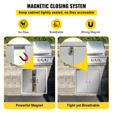 Construção com parede dupla: Dimensões totais (L x A): 61 x 61 cm (24 x 24 polegadas); Dimensões do recorte (L x A): 20,2 x 20,2 polegadas (51,2 x 51,2 cm). As portas externas da cozinha em aço inoxidável 304 são resistentes à corrosão e à abrasão. A porta de camada dupla com design perfeito é mais durável do que uma porta de camada única. A superfície escovada torna a porta atraente e fácil de limpar sem deixar manchas ou sujeira. Alças ergonômicas: As alças requintadas e ergonômicas das portas de acesso à churrasqueira encantam cada abertura com uma sensação confortável ao toque e não são fáceis de arranhar. Ao abrir as portas você encontrará 6 furos para pendurar ganchos na parede interna. Existem também 7 ganchos resistentes nos quais você pode pendurar pinças de churrasco, luvas e outros utensílios de churrasco na porta para economizar espaço. Instalação sem complicações: com furos pré-perfurados na estrutura, nossas portas de armário de cozinha externas são instaladas niveladas em qualquer parede em minutos. Você não precisa mais se preocupar em fazer furos na placa de aço. Então prepare-se para usar as portas requintadas logo após receber nosso pacote e experimente uma qualidade de vida moderna superior. mostre mais