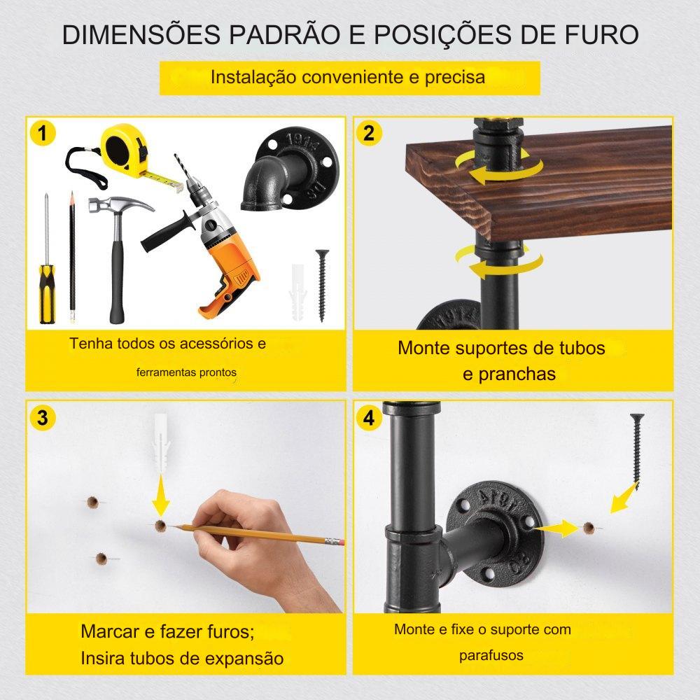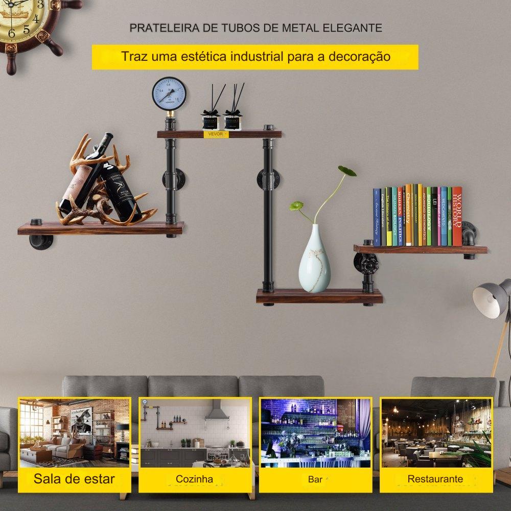 Com um design industrial clássico, esta prateleira de tubos é perfeita para adicionar um toque retrô e luxuoso à sua casa, escritório, bar ou café. Feita de tábuas de madeira de alta qualidade, esta prateleira transmite elegância e chama a atenção.