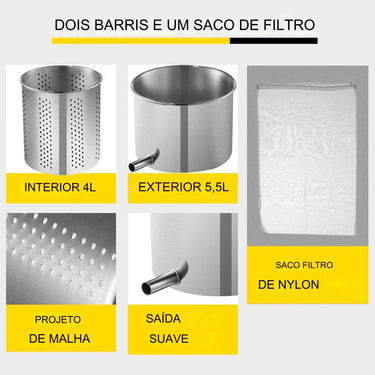 Prensa de Frutas de Aço Inoxidável (5.5L)