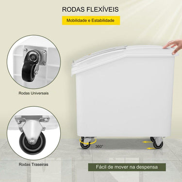 【Ampla aplicação】- A caixa de armazenamento com rodas é perfeita para armazenamento móvel na cozinha. Ela é adequada para armazenar uma variedade de alimentos secos, como arroz, farinha, milho, soja, grãos e muito mais. Com uma capacidade de 21 galões, a caixa oferece espaço suficiente para atender às necessidades de armazenamento. Dimensões do produto: 73 x 34 x 75 cm. Capacidade: 21 galões. Capacidade de farinha: 80L. Capacidade de arroz: 64 kg. Material: polipropileno.