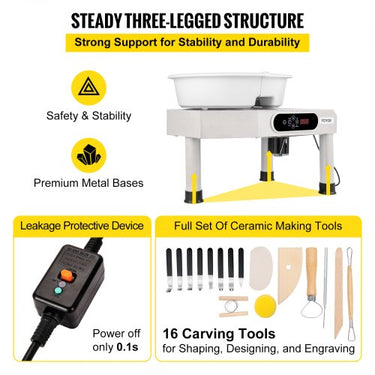 - 【FERRAMENTAS COMPLETAS DE ESCULTURA】 - Um conjunto de ferramentas de modelagem (ferramentas de aço inoxidável de 8 peças + ferramentas de madeira de 8 peças) fornecidas por esta roda de cerâmica ajuda você a criar seus utensílios de mesa, vasos e peças de arte de cerâmica. Adequado para ensino escolar, barra de cerâmica, uso doméstico, etc.