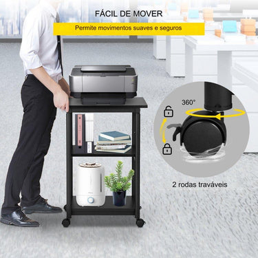Este suporte de impressora não apenas oferece funcionalidade e praticidade para o escritório, mas também pode ser usado como prateleira de cozinha para um micro-ondas ou como prateleira de exibição na sala de estar, adicionando flexibilidade e versatilidade aos espaços.
