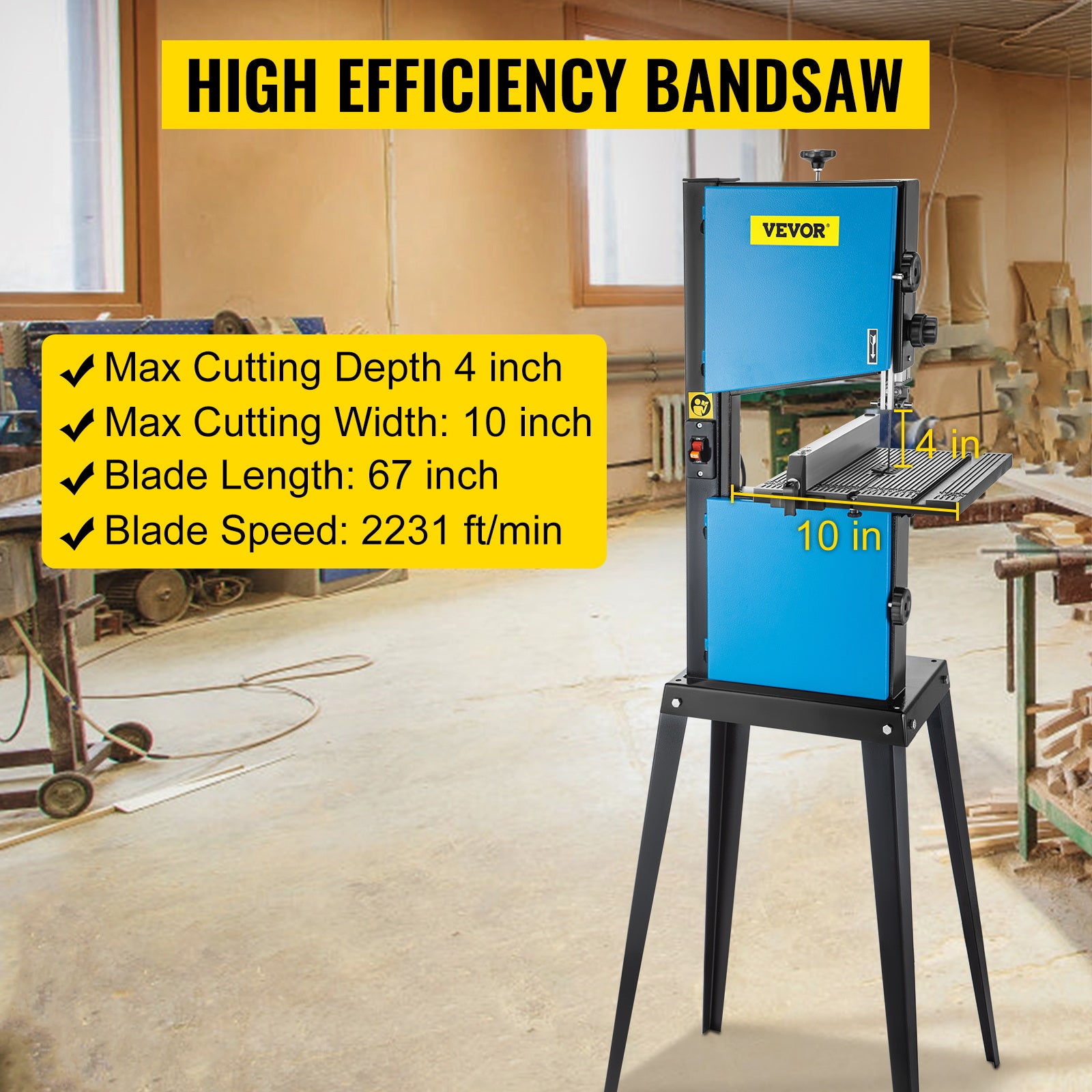 Serra de fita 10 polegadas, serra de mesa 3,5 amperes, serra de fita de parada 1700 RPM, máquina de serra de fita para madeira 0-45°, serra de fita para madeira 220 V profundidade de corte 4 polegadas / 100 mm largura de corte 10 polegadas / 245 mm