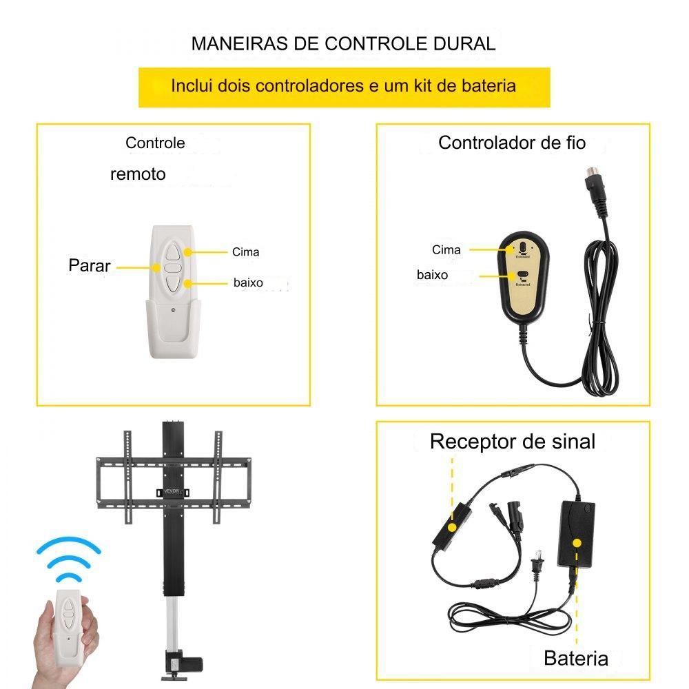 Com um comprimento de cabo de 80 cm, este suporte de TV possui uma função de elevação automática com um gancho de 3 estágios. Com um motor potente de 1000 N, a tela da televisão pode ser levantada ou abaixada suavemente a uma velocidade de 15 mm/s. Ideal para televisores entre 42,3 e 73,7 polegadas.
